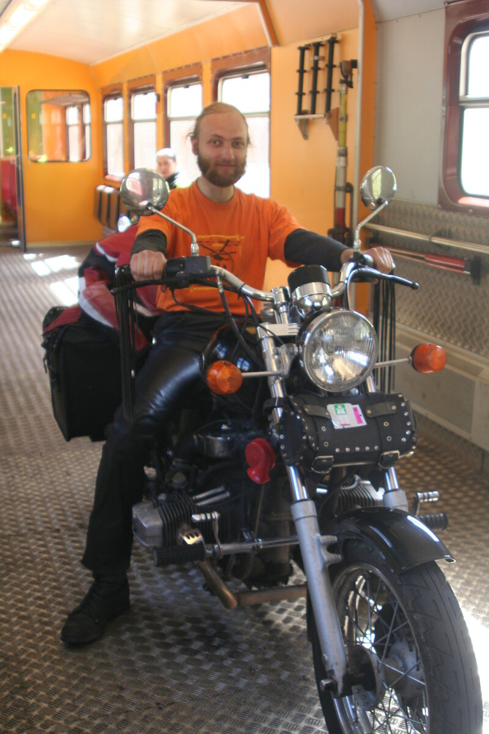 Утром мы с Александром Георгиевичем пытаемся внедрить Дер Кардан в «Волка». К нашему изумлению, в мотоцикл помещается либо заднее колесо, либо новая запчасть – совместить их не представляется возможным! Даже непонятно, от какой модели «Урала» эта деталь: будем думать, что от какой-то экспериментальной. Саша надеется, что старая крестовина всё-таки дотянет до дома, и в порядке утешения мы направляемся в магазин мототоваров «Луис».