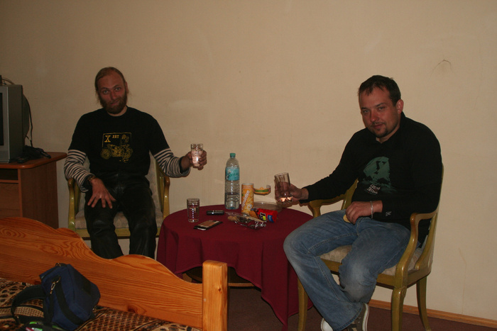 После нескольких оборотов стартёра мотор заводится! Беглый осмотр выявляет минимальные повреждения: немного помялся «нос» коляски и переднее крыло. Только мы теперь страшно грязные и воняем тиной. Легко отделались! Вечером переходим белорусскую границу, доезжаем до Кобрина и размещаемся в проверенной уютной гостинице. Перед сном поднимаем 200 грамм за День победы. У нас ведь тоже своя маленькая победа – мы почти дома.