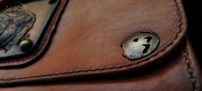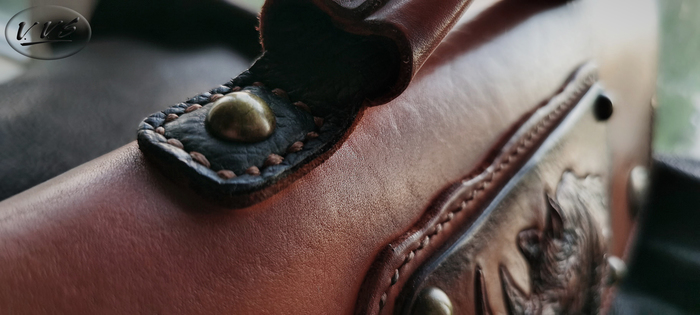 Вышивается послойно. Сначала основной слой. Снимаем пяльца обрезаем лишнее. Потом следующий слой. И т.д. практика показывает, что кожа нужна не толстая иначе вышивалка на стыках множества слоев может не вывезти высоту кожи. По этому все слои тщательно продумываю.