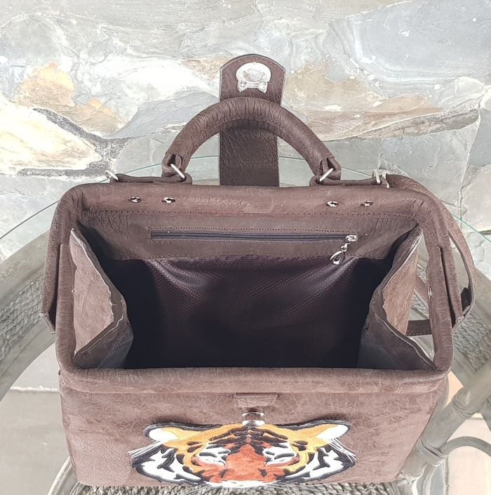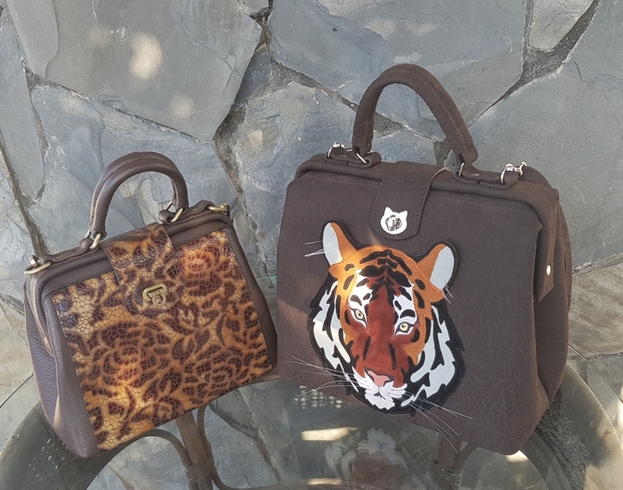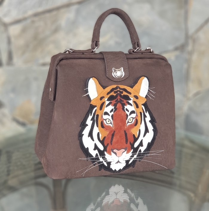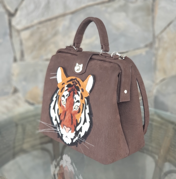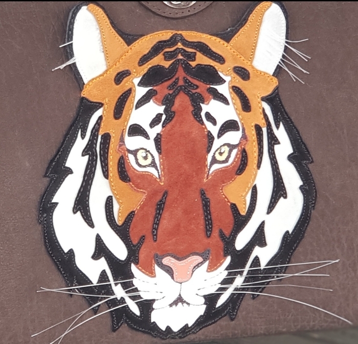 Тигр - использовала кожу натуральную белую и смесь цветов натурального велюра. Саквояж кожа КРС, внутри детали из натурального велюра.