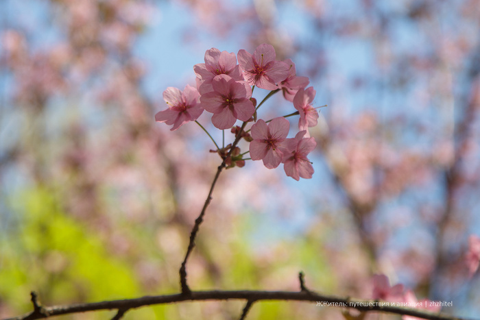 В Москве толпы людей приезжают полюбоваться заморским чудом — цветением сакуры. Я тоже решил съездить и посмотреть. Это действительно очень красиво!