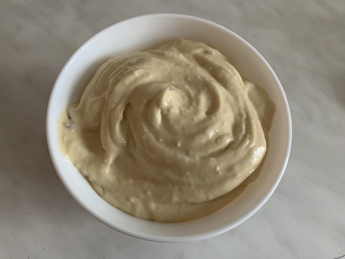 А главный секрет соуса в том, чтобы ингредиенты были одинаковой температуры. Иначе соус расслоится и не будет однородным.