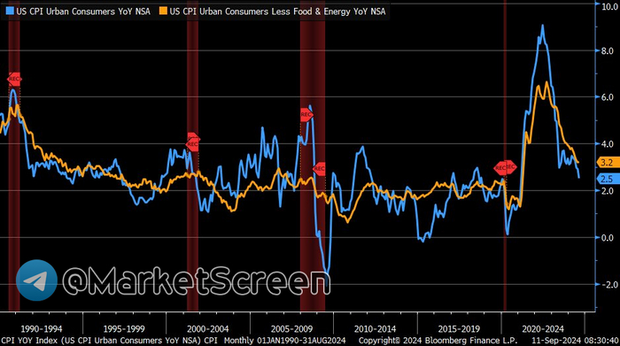 В августе 2024 она составила 2,5% год к году. Т.е. практически вышла на целевой уровень в 2%.