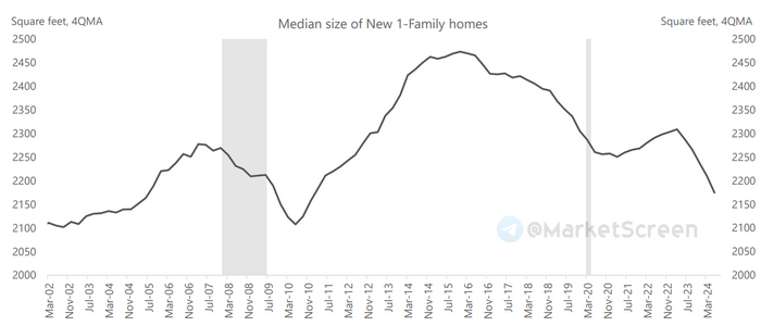 Медианный размер нового моносемейного дома в США составил порядка 2170 квадратных футов или 201 кв.м.