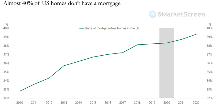 Интересно, но факт – почти 40% домов в США без ипотек. И это показатель стабильно растёт вот уже более 12 лет. В 2010 таковых было порядка 33%. А ведь мы привыкли, что там всё в кредит.