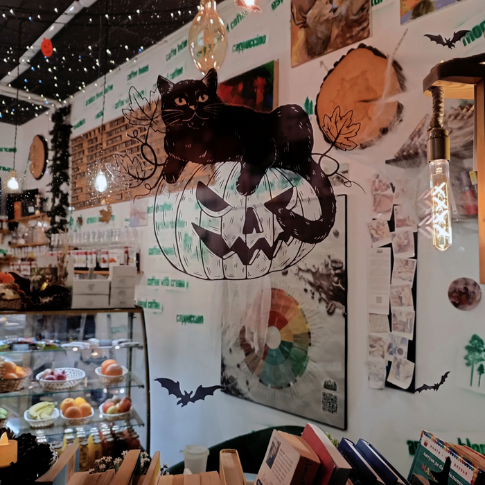 Ух ты! Как в этой кофейне здорово всё украсили.