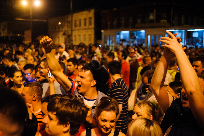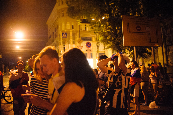 Потом начались матчи. Мне казалось, что мы привыкшие к демонстрациям и празднованию нового года. Закрытые калитки, патруль жильцов, отгоняющий желающих сделать из двора туалет (туалеты в 100 метрах на площади, изобилие). Закрылись магазины, ибо не получили аккредитации для работы в фанзоне. На их месте открылась Горилка. Даже не интересующиеся футболом старушки знали расписание игр, ибо в эти дни в магазины не могли завезти хлеб и молоко.