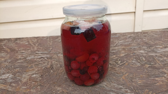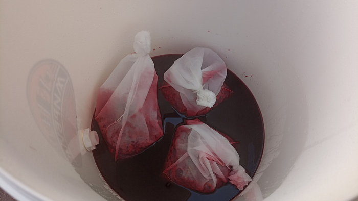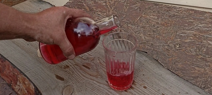 После того как вино постояло в холодильнике, разлил в стеклянную тару и в целом можно уже попробовать.