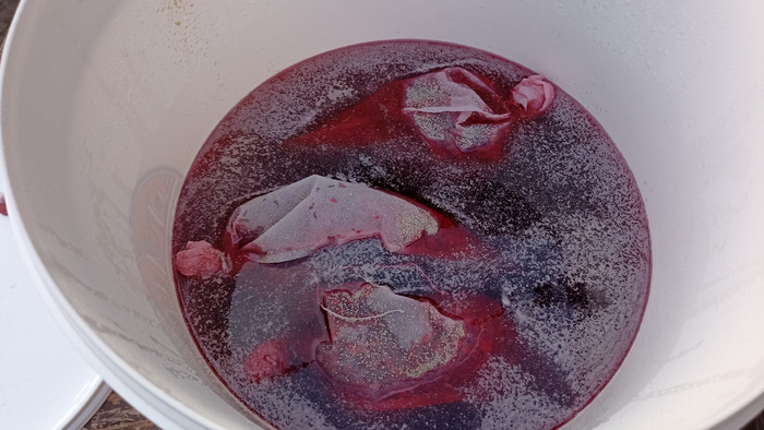 Следуя инструкции ингредиенты плюс-минус равномерно распределил по трём мешкам и залил двумя литрами кипятка. В инструкции не написано на какое время оставить распариваться эту смесь, я оставил на час.