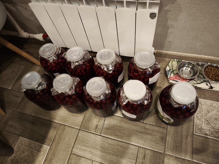 Почему выбрал именно Вишневое - тут всё просто, поставил я ёще вишнёвое вино, но на свежих плодах со своего огорода, только оно ещё бродит и не готово. Хотелось бы сравнить их, вот и весь ответ)