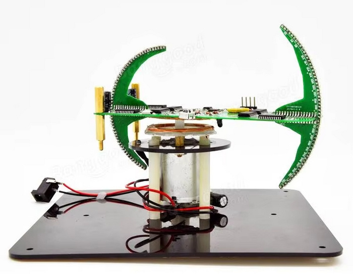Устройство для создания 3D-голографических эффектов демонстрирует возможности современной светодиодной электроники в наглядной форме. В основе конструкции используется вращающийся элемент с управляемыми диодами, формирующими объёмные световые изображения в воздухе.