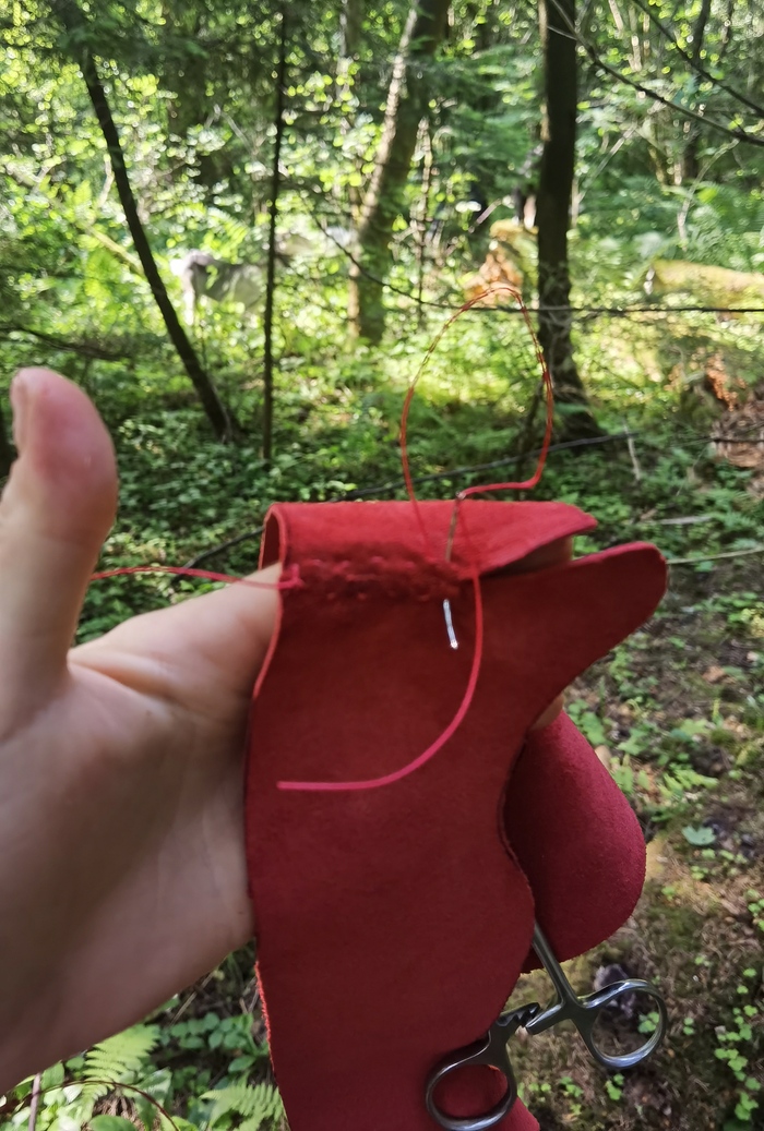 При помощи шила и иглы с ниткой применяем к тапкам старое доброе ультранасилие. А потом их надо вывернуть на лицо. Это немного страшно, потому что кажется, что сейчас всё порвётся, но надо рискнуть. Это, всё-таки, обувь, и если она собирается рваться - лучше это выяснить сейчас, потому что далее ей надо будет пережить три дня бегания по пересечённой местности.