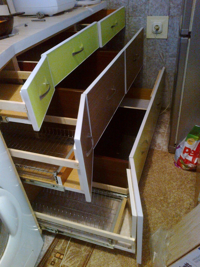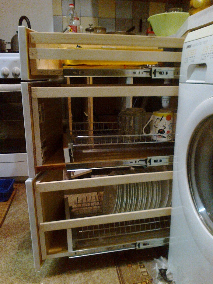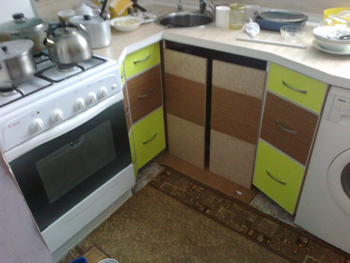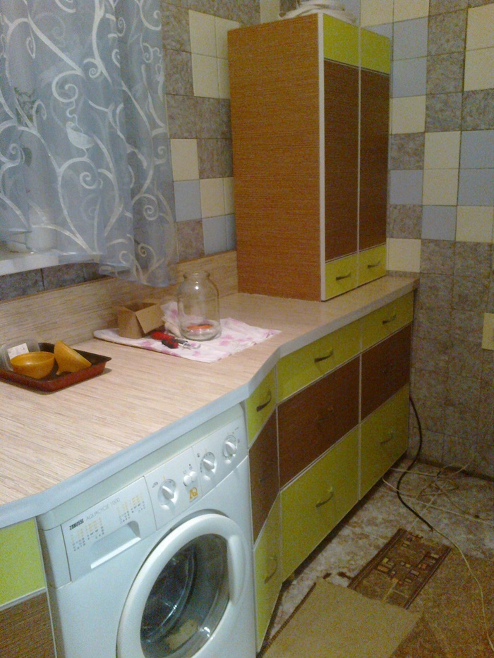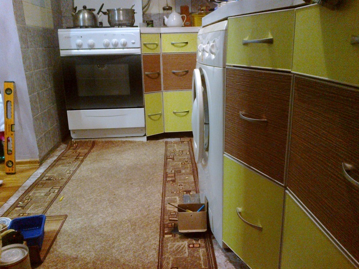 Нужно было уместить стиралку под столешницей, и под плитой небольшой подиум делался для выравнивания.