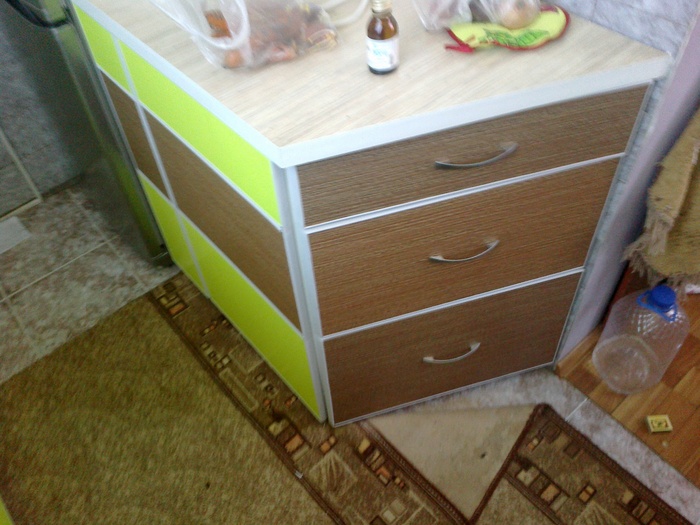 Толщина столешницы 40мм. Два слоя дсп склеены пва и ламинат приклееный на силикон. И нет он не вспух и неразъехался от влаги.