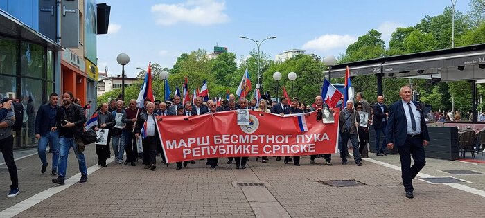 "Бессмертный полк" в День Победы 9 мая в городе Баня Лука, Республика Сербская в Боснии и Герцеговине