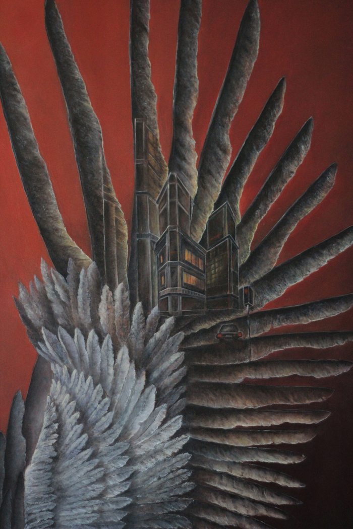 За энергию, за мощь, за силу я назвала работу Атлант. И он расправляет крылья. Одно крыло, как можно заметить в "поджатом" состоянии, словно говорит "я ещё раскроюсь". А другое крыло- оно огромно, оно открыто, оно сильно. С момента того, как я назвала картину, я понимала, что в ней будут видеть произведение Айн Рэнд. Впрочем, наверное это и не плохо.
