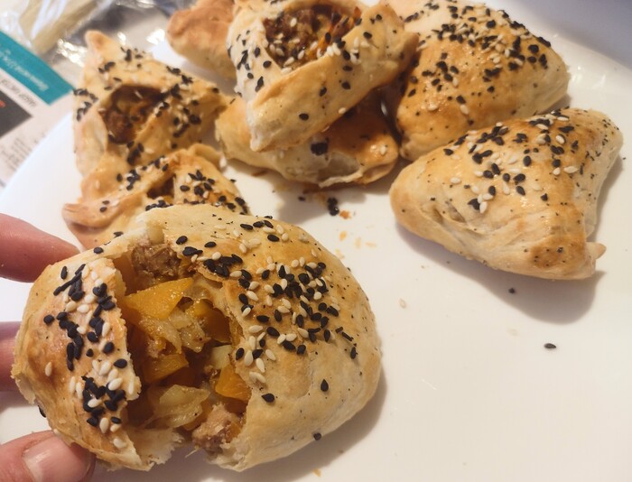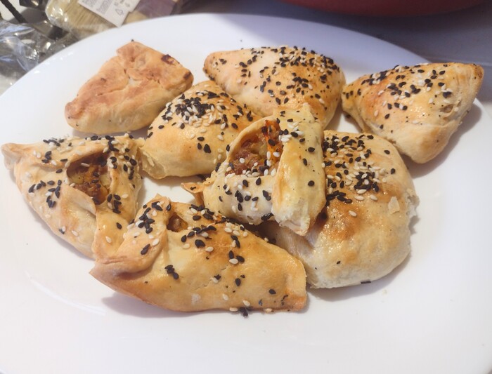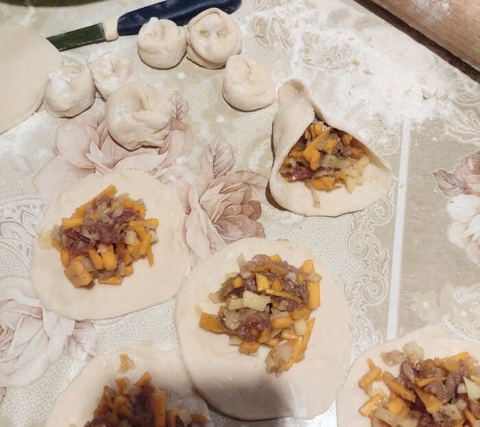 Начинку кладу на кругляши и делаю самсы разной формы.