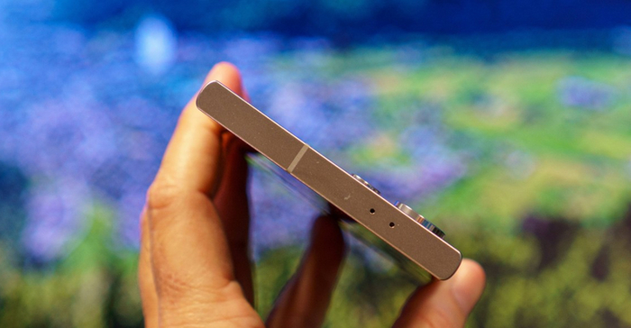 На передней панеле мы сразу же заметили уменьшившиеся рамки. Даже если Samsung не подчеркивает это изменение, оно вполне очевидно. Окантовка вокруг экрана стала очень тонкой.