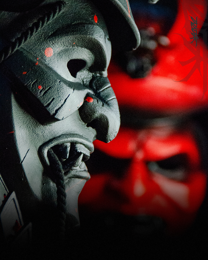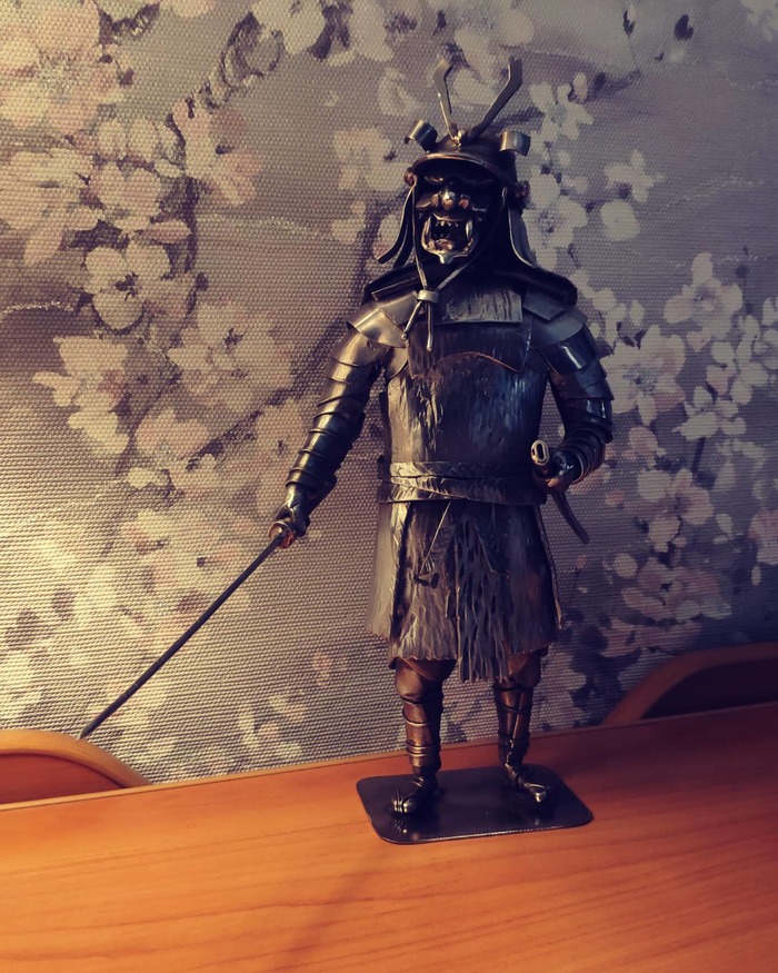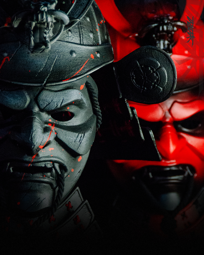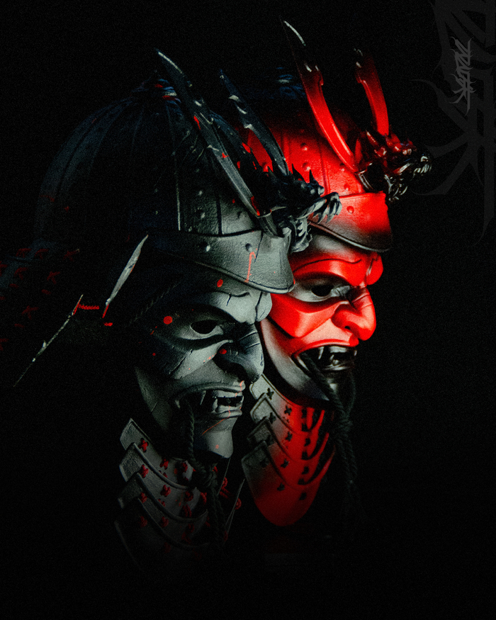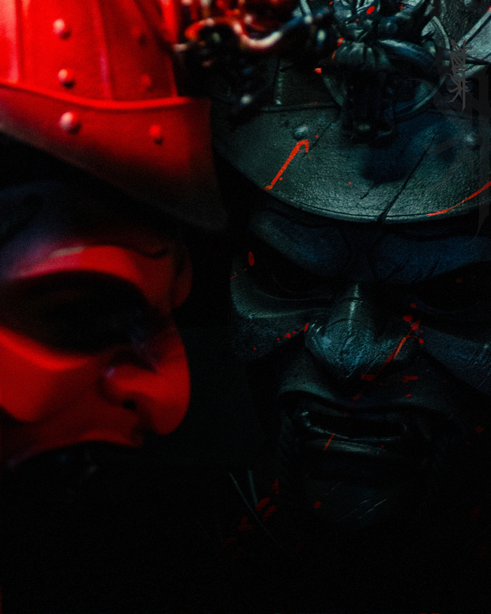 Сделал второй шлем самурая, уже на заказ. Добавил сколы, царапины и брызги крови.