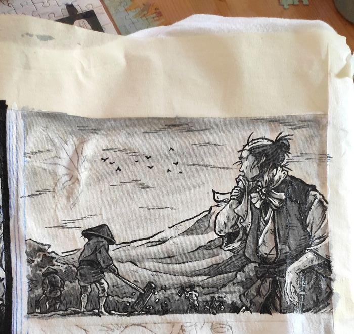 Натянув в качестве струн на свой сямисэн волос матери, тетиву отцовского лука и свой волос, собрав всю свою энергию в свою кисть, он сыграл «финальный аккорд» для своего дедушки.