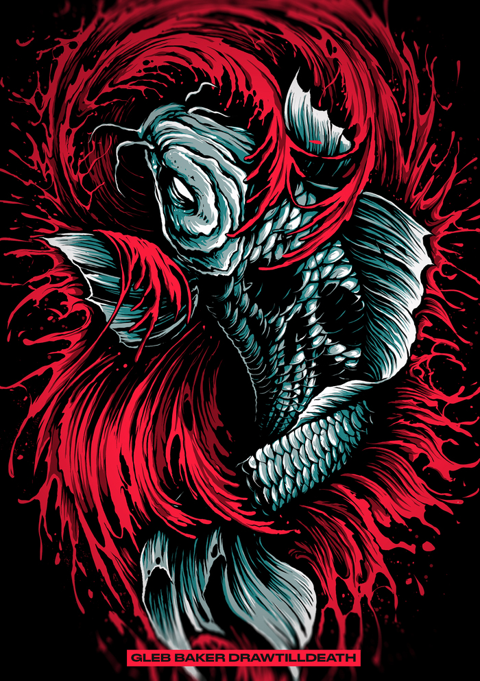 [моё] Арт Цифровой рисунок Япония Самурай Карпы кои Художник Рисунок на планшете Wacom Длиннопост