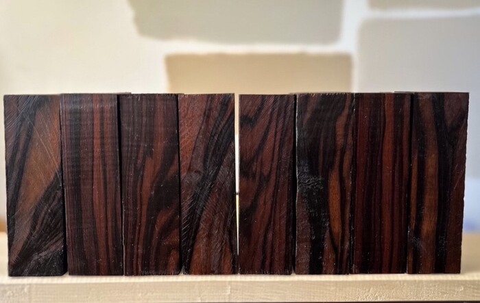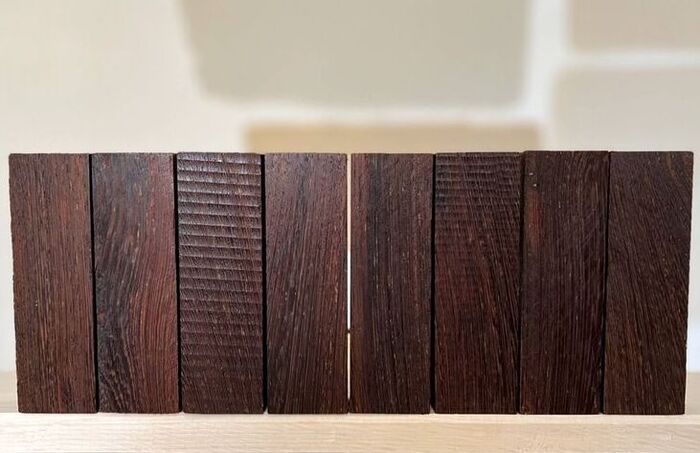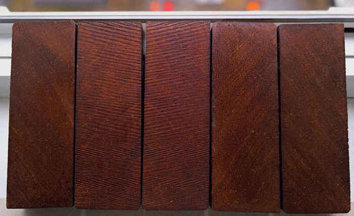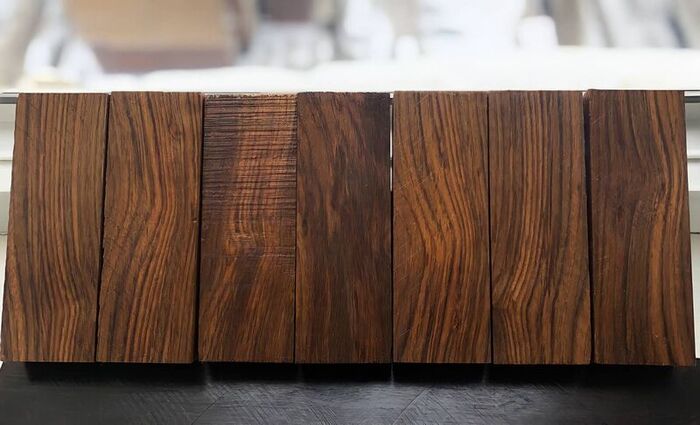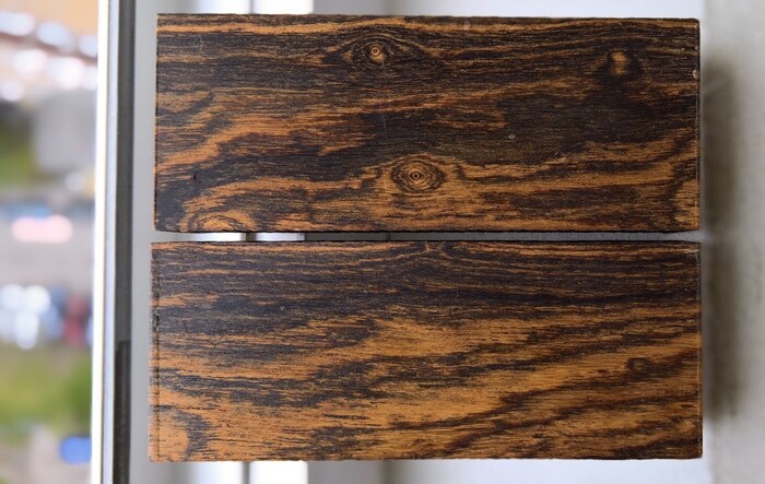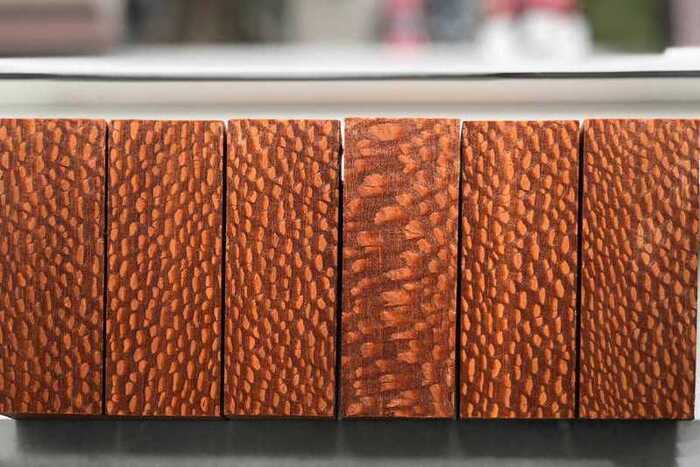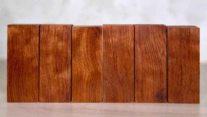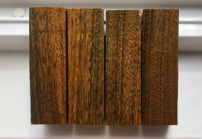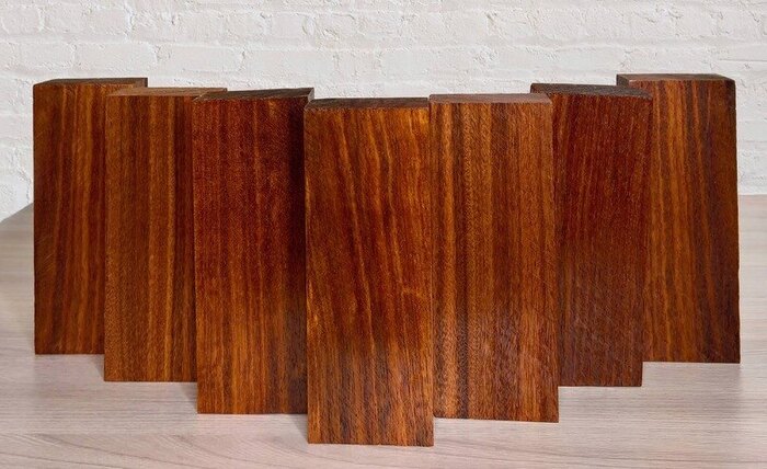 Твердые породы идеально подходят для изготовления рукоятей ножей. Также высоко ценится красивый рисунок дерева, что само по себе является отличным украшением ножа. Правильно подобранная древесина дополнит готовый нож и добавит ему функциональности и долговечности. Для ножевых чешуек используются твердые породы дерева, такие как черное дерево, африканский тамботи, палисандр, африканское черное дерево, мербау, венге, самшит, бубинга, палисандр Сантос, парагвайский кебрачо, тигровое дерево, лидвуд, лейсвуд, парагвайское железное дерево, железное дерево пустыни Аризоны, кокоболо, бокоте и другие. .
