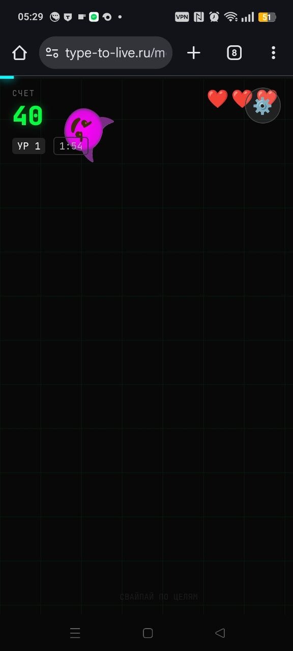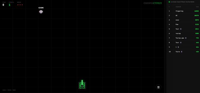 Если пользователь заходит с компа, то запускается тот самый тренажер слепой печати в виде игры. У вас есть танчик, который стреляет по врагам. Механика простая: для выстрела нужно быстро набрать слово, которое видите на экране.