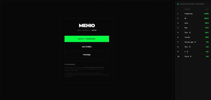 Всем привет! Это мой первый опыт в разработке. Решил хоть и с помощью нейронок, но всё-таки создать свой собственный проект, а-ля тренажер набора текста на клавиатуре.