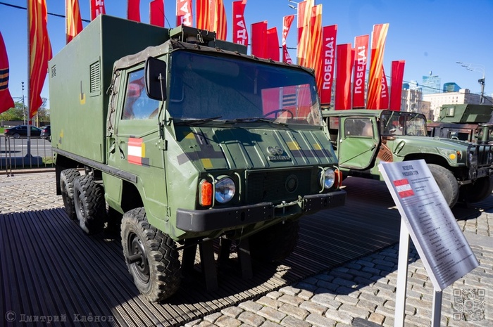 И дальше мы встречаем совсем уж неожиданного гостя. Это австрийский «Уазик» Пинцгауэр 712M родом из 70-х годов прошлого столетия, который, как ни странно, всё ещё производится в Великобритании, но этот работяга ещё из классической серии.
