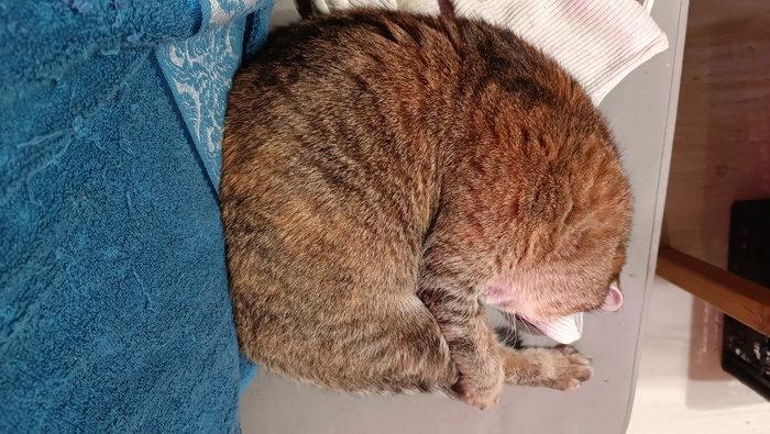 Коллега сказал, что кошка нагуляла, раскидывают по рукам. Забрал это чудо.