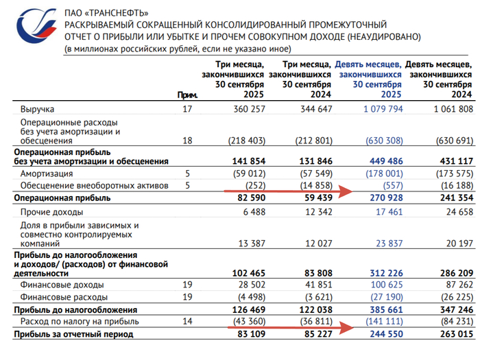 Транснефть отчиталась за III кв. 2025 г. — операционная прибыль взлетела, скорректированной прибыли хватает на приличные дивиденды