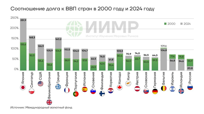 Госдолг к ВВП при ВВП :), в динамике, 2024 - на картинке выше. Для Франции в 2025 — уже 114 %, Италии — 135.