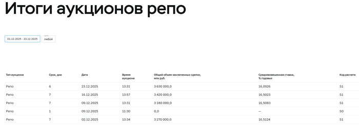 📌 При таких тратах дефицит бюджета необходимо чем-то восполнять, ₽ крепок, ставка пала на ОФЗ, что вполне логично (цена Urals на низких уровнях из-за наращивания добычи ОПЕК и санкций). В этом году Министерство разместило ОФЗ более чем на 8₽ трлн, план на 2026 г. выглядит оптимистично — 6,5₽ трлн (ОФЗ в иностранной валюте в объёме, эквивалентном не более 1$ млрд). Также очередной недельный аукцион РЕПО показал, что ликвидности банкам не хватает (в декабре банки привлекли 13,5₽ трлн, отдали 9,870₽ трлн, на последнем аукционе спрос составил 6,419₽ трлн, но выдали только 3,630₽ трлн, ликвидности банкам не хватает).