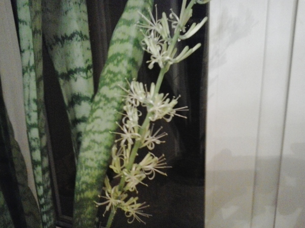 Так же по информации в интернете "Цветет тещин язык довольно редко, только при неправильном уходе, когда ему не хватает света и полива. Некоторые считают, что цвести этот комнатный цветок может только в исключительно благоприятной атмосфере. Поэтому если сансевиерия зацвела в любое время года, кроме зимы, никакого дурного значения это событие не несет. Напротив, это способствует новым начинаниям и удаче в их исполнении."
