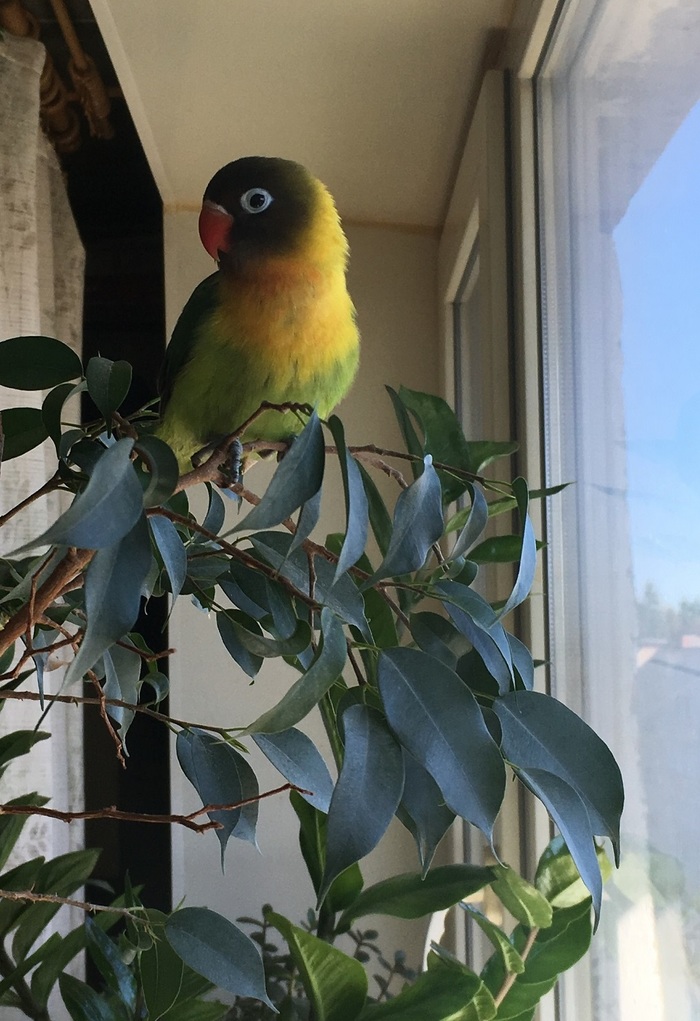 Ловите фотку, где ему полгодика примерно, очень любил на фикусе сидеть и в окошко смотреть.