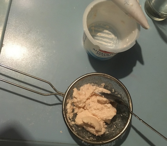 Первым делом конечно пришлось выкинуть в унитаз примерно треть продукта, где плесень образовалась. Так что тестируем 2/3 оставшейся массы.