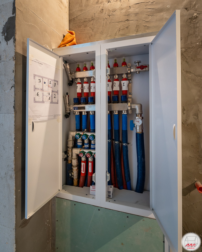 Выполнен монтаж теплых полов и водоснабжения с канализацией в доме площадью 170кв.м. Котельная будет во второй части.