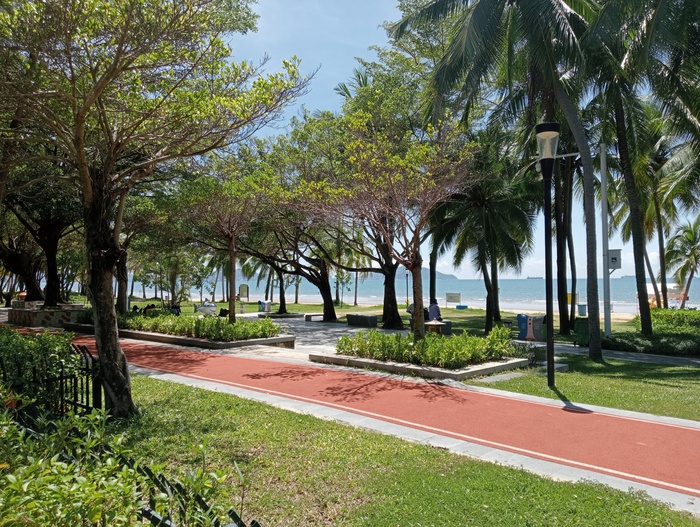 Главный пляж Саньи — это белоснежный песок, прозрачная вода и живописные закаты. Сервис здесь скромный, но природа компенсирует многое. Иногда на берег выезжают строительные машины, и это воспринимается как часть местного колорита. Развлечения — стандартные: водные аттракционы, флайборды и катание на «банане». Главное достоинство пляжа — возможность отдохнуть от суеты.