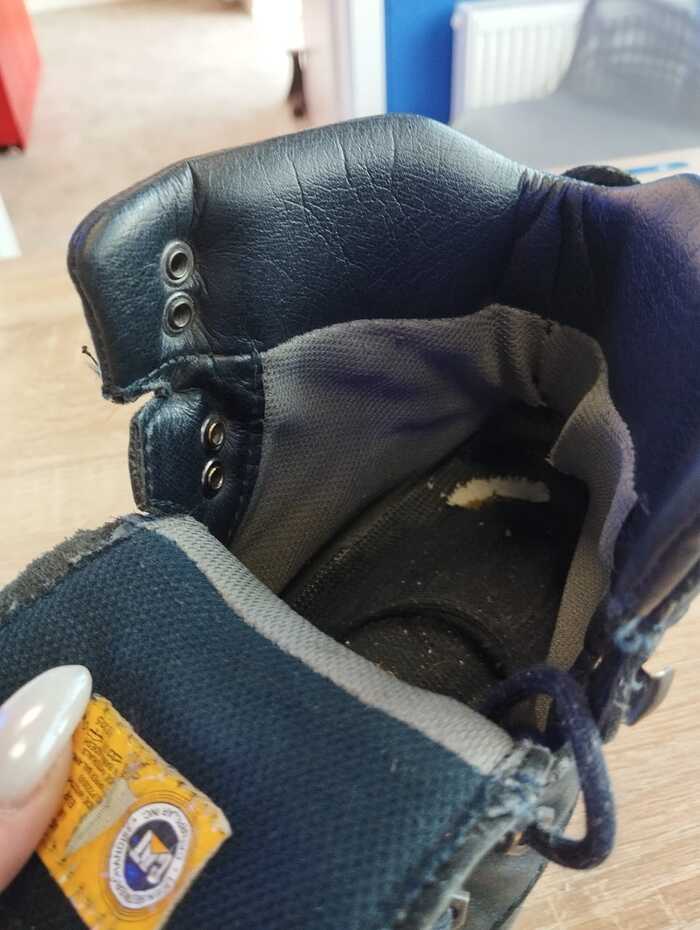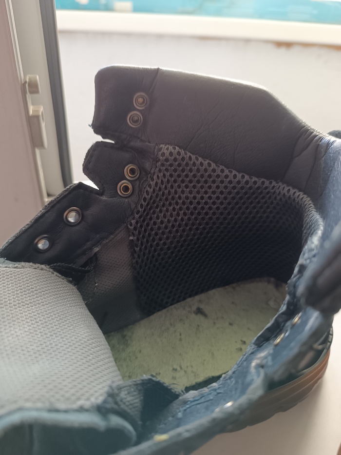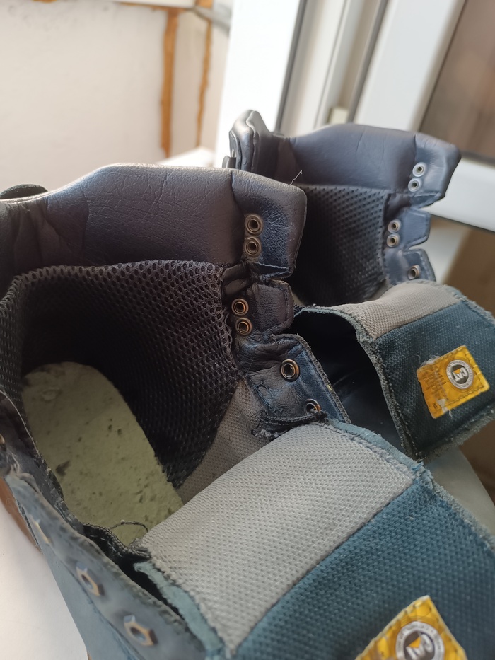 Заменила задники в ботинках. Где достала - прошила на версале, остальное прошивала седельным швом. Люверсы не снимала, загнала сетку под края штаферок. Садила на наирит.