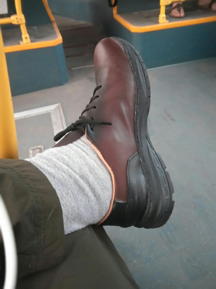 Снятие мерок у деда выглядело обычно так: на тонкий картон (размера примерно А4, даже чуть больше) заказчик вставал ногой, дед обводил контур стопы. После замерял полноту и т.н. подъём: