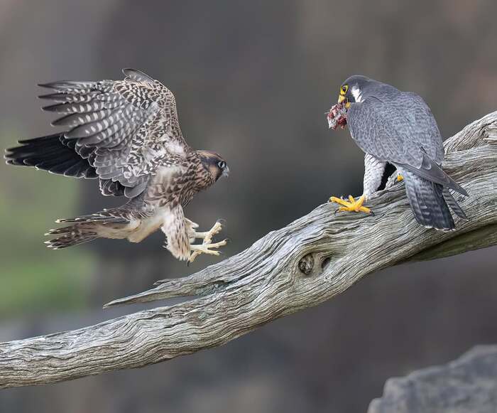 Молодой сапсан ощипывает добычу