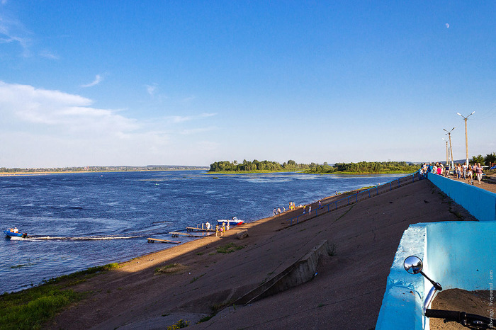 Тут я наконец-то в первый раз добрался до Камы. В смысле так, чтобы искупаться и постирать одежду. Дно оказалось довольно-таки песчаным, и водорослей этих лохматых было не так уж много. Поэтому место популярное, и народу тут плескается вполне изрядно.