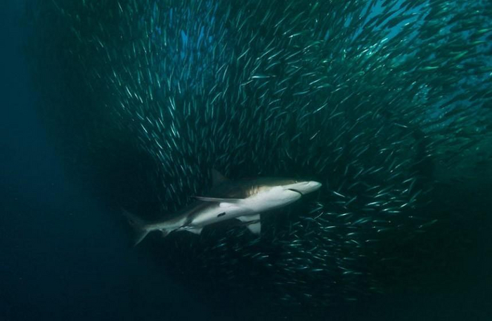 10. «…акулы, дельфины и бакланы пользуются таким поведением сардин и с легкостью ловят добычу.»