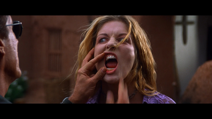 Позже Валек убивает священника, таким образом, как будто он застрелился сам, что для них ну вы знаете. Спастись конечно же удаётся только двум главным героям и девке, которую озорник Ян укусил прямо в пизду. Позже Джек вернётся в этот мотель, что бы отрубить трупам головы и проткнуть сердца колом и эта один из самых эпичных эпизодов фильма. Он дискомфортен, но очень органичен тем, что ты веришь в это, что так нужно и Кроу совсем не хочется этим заниматься, но по другому нельзя. И не только это смотрится натурально, очень многое. Даже сами ключевые персонажи Джек Кроу и Тони Монтойя не являются к счастью карикатурными протагонистами, у Блэйда конечно тоже был скверный характер, но эти двое больше похожи на ковбоев-разбойников с большой дороги. Огромные револьверы, джинсы, ремни с бляхами, грубые манеры. Они много ругаются их шутки либо пошлые, либо чернушные, а эмпатия пребывает в печально болезненом состоянии. Они привыкли жить в дешёвых мотелях, питаться только пивом и бургерами, хотя судя по всему финансируют их неплохо. Запросто могут угнать автомобить если нет своего, избить или даже пытать человека. Конечно только в том случае если человек обладает важной информацией и скрывает её. Это хорошо особенно заметно в контрасте с молодым священником, взамен убитого старого. Который не то что не привык к насилию, но и к нецензурной брани, хотя грубое отношение к нему ещё было связанно с тем, что Кроу подозревал попа, в том что он засланный. В общем персонажи тут интересные и неплохо прописаны, хотя неплохо было бы ещё узнать кем они были до этого. Моё мнение, что скорее всего военными или что-то в этом роде, потому как матёрые, умеют обращаться с оружием и не стесняются его применять чуть что..