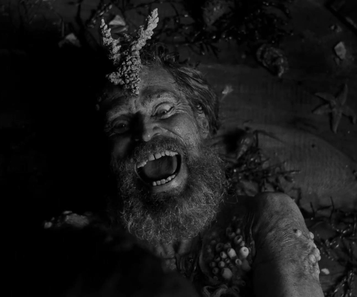 В самом начале, Томми в матрасе находит маленькую, деревянную фигурку русалки. Кстати нередко в сети я натыкался о том, что некоторые люди испытывают к ним сексуальное влечение. Правда непонятно как может возбудить крошечная фигурка, я понимаю 19 век, может у всех разные фетиши. Позже он видит уже настоящую "Ариель" в своём сне, плывущую в морских глубинах. Томми стал периодически яростно фапать на всё это, в местном сарае. Не исключено, а скорее всего так и есть, что Протей и он же подсылает все эти образы и скорее всего сам превратился в русалку. Которую Томми обнаружит на берегу, спустя какое-то время. "Ариель" начинает крипово верещать, Томас в ужасе петляет от неё и орёт на всю деревню. И я почти уверен, что это сам дед сам и был, так как он позже ещё и превращался в того самого Уинслоу, которого Том снял с должности. Согласно мифологии Протей мог принимать любое обличье и наказывал всяких негодяев. Для хороших людей был безвреден и они его даже не видели. Возможно Томми и до этого грезил о русалках в сексуальном контексте, где-то прочитав, а Протей его выкупил. Правда, под вопросом остаются гомосятинские наклонности последнего. Он не раз делает комплименты разного рода мужчинам, с которыми якобы ходил в море на корабле. Периодически замолаживает и самого Томми, но открыто не домогается. К чему эта сюжетная линия я так же не совсем одупляю. Возможно как образ мужика, живущего много лет в отдалении от цивилизации и не видящего никого кроме мужчин. Но опять же это сомнительно, так как вряд ли стопроцентный натурал захочет другого мужчину, даже если женщин он не увидит никогда. Удобнее всего сослаться на чёрный юмор, повторно, подчёркивая сумасшествие всего происходящего. Либо как очередной троллинг Ховарда, который тоже страдает от воздержания и вариантов не особо. Либо криповая русалка с огромным влагалищем, либо дедушка. Что возможно так же повлияет на Томми и его психика начнётся разрушаться, приводя к нервному срыву. Тем более что с дедом они хоть и в какой-то степени подружились, но тот всё равно продолжает грубо его эксплуатировать по работе. Это не тот фильм, где герои сначала друг друга ненавидели, а потом стали лучшими друзьями. И если моя теории об искуплении и наказании верна, то это было бы невозможно в принципе. Тем более что старый ещё и регулярно пакостит Тому, записывая в журнал все его проёбы, большинство из которых надуманы. Паренёк трудился честно и не отлынивал. Нужно было его спровоцировать, что бы он попытался убить Уэйка, так же как и Уинслоу. Поломать его волю, пошатнуть психику, довести до аффекта, а там уже всё произойдёт само собой. И когда уже Томми прижимает ахуевшего смотрителя к стенке, тот прекрасно зная его слабые места, снова выходит берёт над ним вверх. Но причина не только в том, о чём я рассказывал выше, тут ещё большую, но второстепенную роль играет сам Маяк..