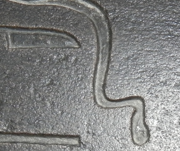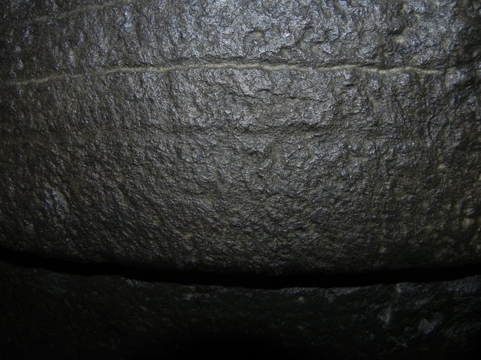 Нет никаких сомнений в том, что гроб в последствии "допиливался" каким-то инструментом, который существенно уступал по точности и качеству результата применения. И не смотря на то, что те кто доделывал саркофаг очень старались, отличить их работу от предшественников, при определенном навыке, хоть и сложно, но все же можно. Я уже приводил пример выше, как полосу пытались доделать в линию, а вот еще один хороший пример:
