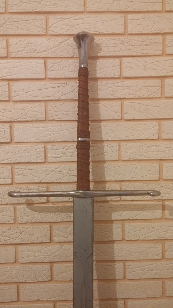 155 сантиметров длины, два килограмма боли и смерти. Гарда и яблоко - сталь, лезвие - стеклотекстолит. Ну как, получилось у мастеров? :)