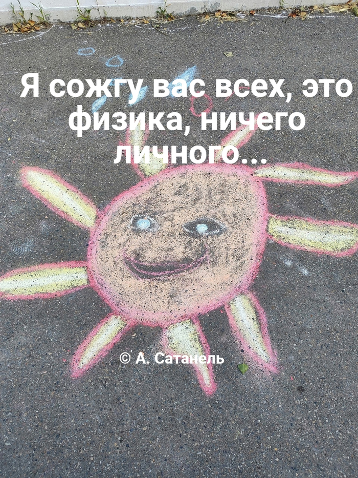 79 Satanel Солнышко 5 месяцев назад Показать полностью 1 [моё] Сатанель Грустный юмор Ирония Юмор Сарказм Мемы Рисунок на асфальте Картинка с текстом 5 1 1 Ещё 0