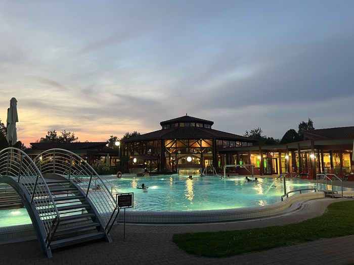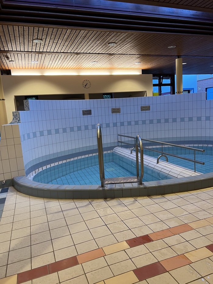 Впрочем, вернемся к Thermalbad Bad Saulgau, где я и находился. На общем фоне, это было достаточно скромное заведение и довольно таки старое. Парилок было всего 5 видов (в крупных комплексах от 10 ). Очень слабенький уличный сад. Небольшая зона отдыха, пара маленьких бассейнов, да вот пожалуй и все. И так как посетителей почти не было, я воспользовался камерой телефона.