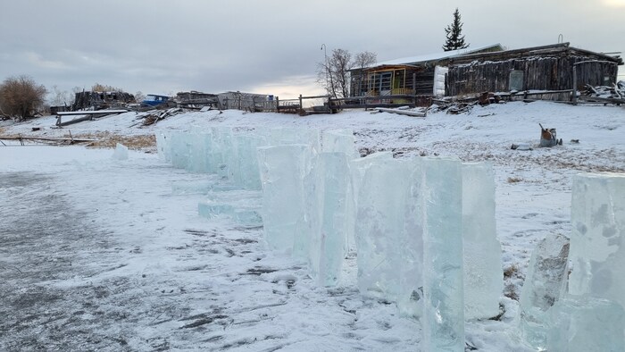 Всё, все льдины поставлены вертикально, выставляем специальных мелких охранников чтоб местные собаки писали на этих охранников, а не на нашу армию из льдин. Потом все это добро перетаскиваем до дома любым удобным способом и пьем чистую воду весь год до следующей зимы)